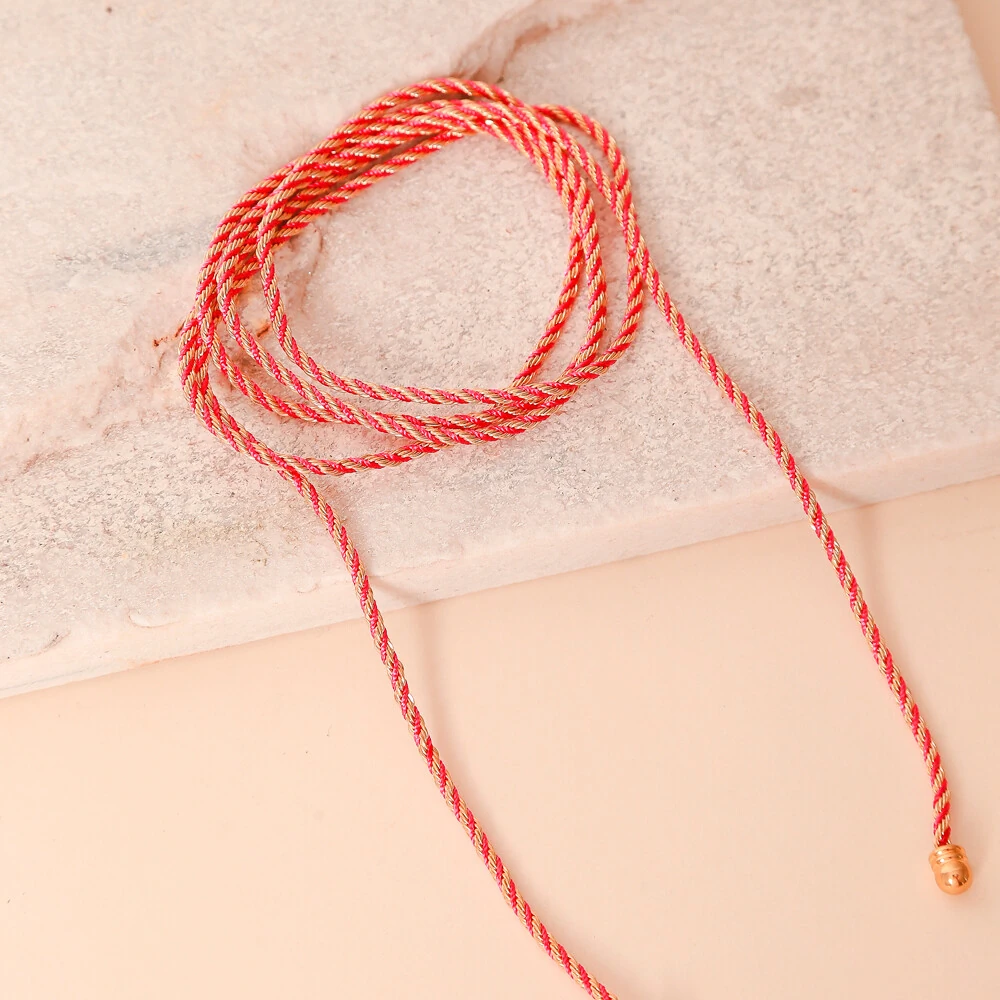 O Cordão Marroquino é uma peça totalmente artesanal, é uma corrente torcida banhada a ouro, com um fio de seda, não possui fecho, seu comprimento pode ser variado aproximadamente á 1m, banhado a ouro. Pode ser usado como colar, pulseira e tornozeleiras , permitindo dar diversas voltas, pois a idéia é criar várias camadas dando destaque na região.