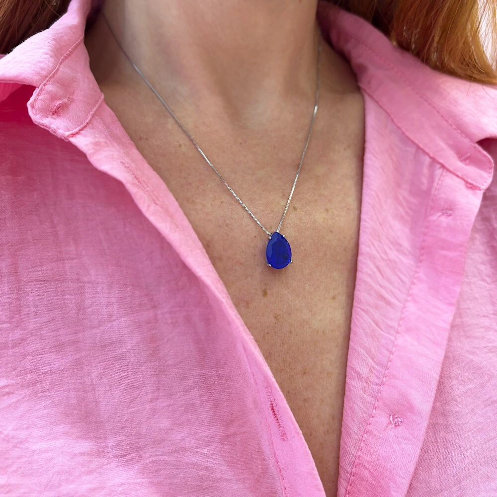 -70%Brinco Gota Safira Prata 925