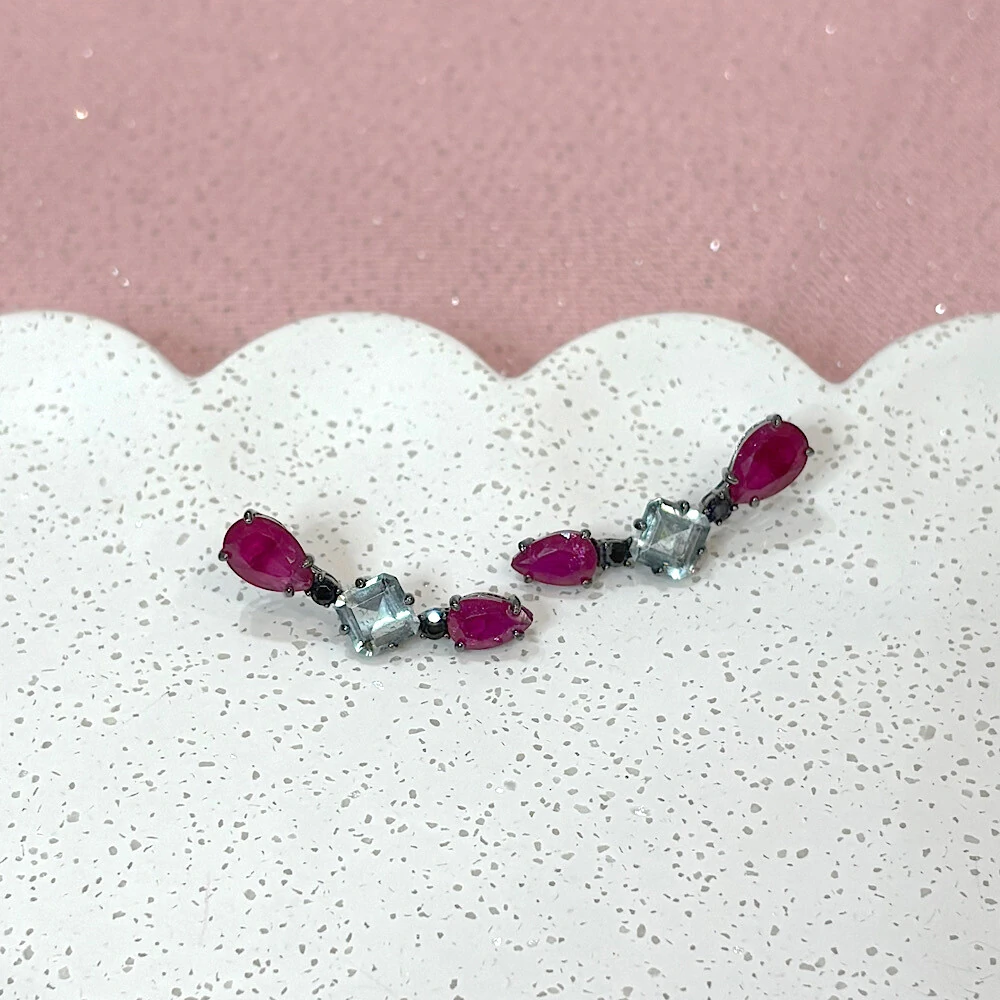Brinco Turmalina Rosa Rainbow