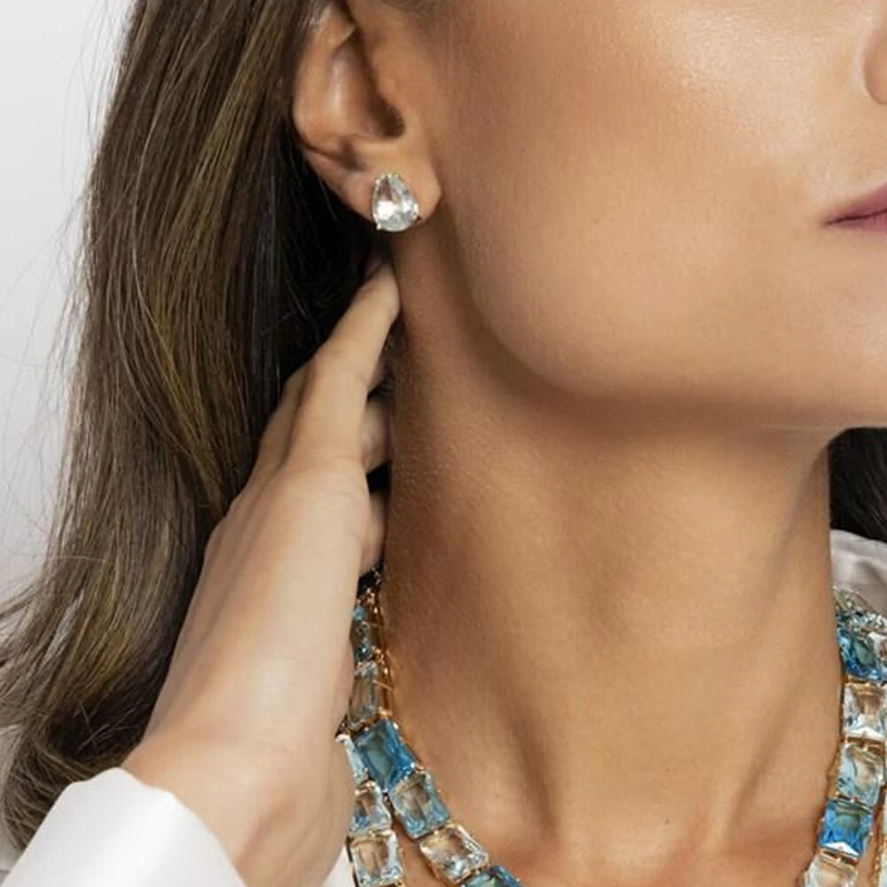 -30%Argola Chuva de Cristais Rosa e Pérolas